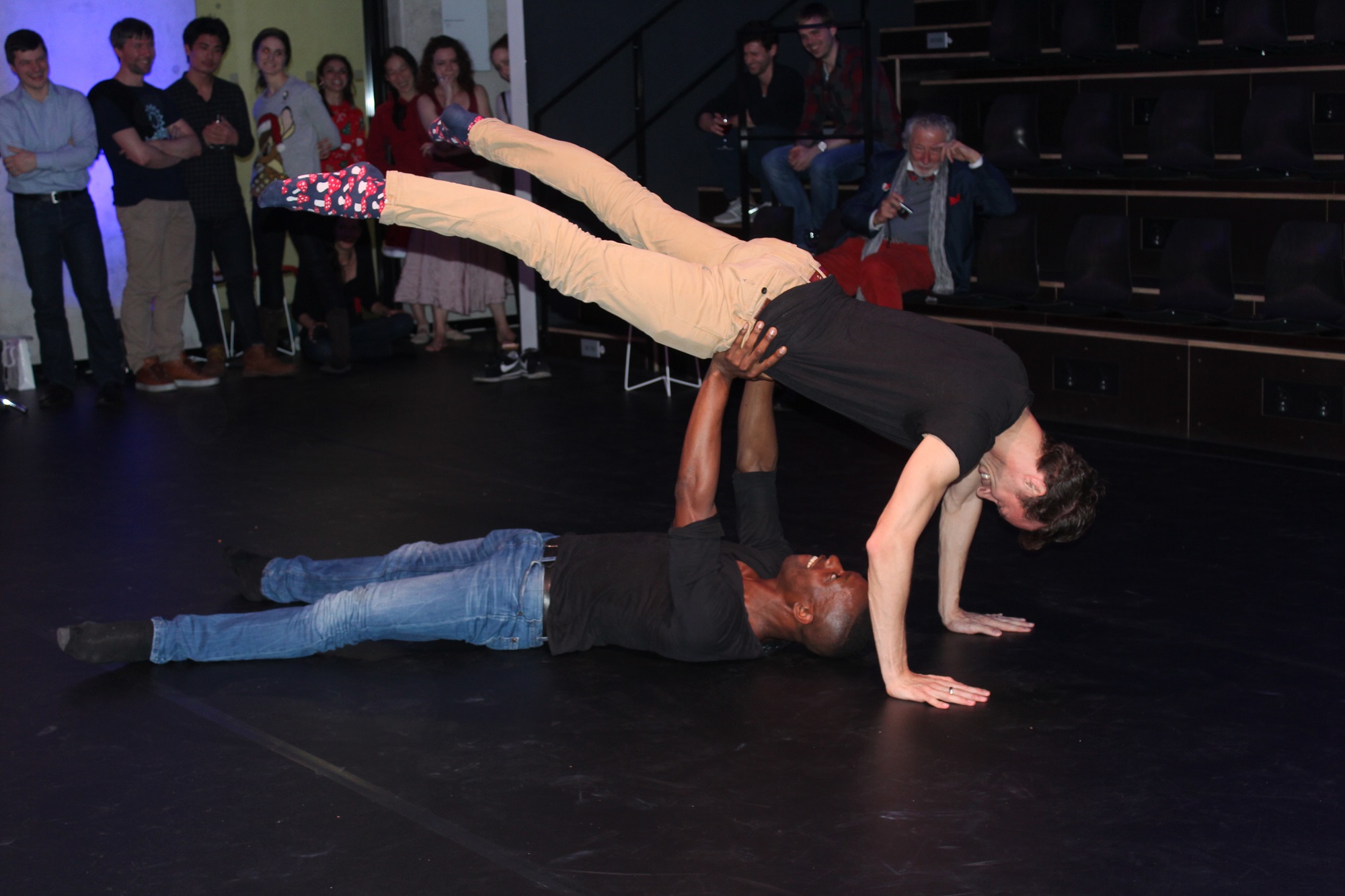 Auf der festlich geschmückten Studiobühne konnten die Teilnehmer neben einem hervorragenden Buffet ein ansprechendes Programm mit Darbietungen aus der Kompagnie genießen. Auch das gemeinsame mehrsprachige Singen von Weihnachtsliedern durfte natürlich nicht fehlen.