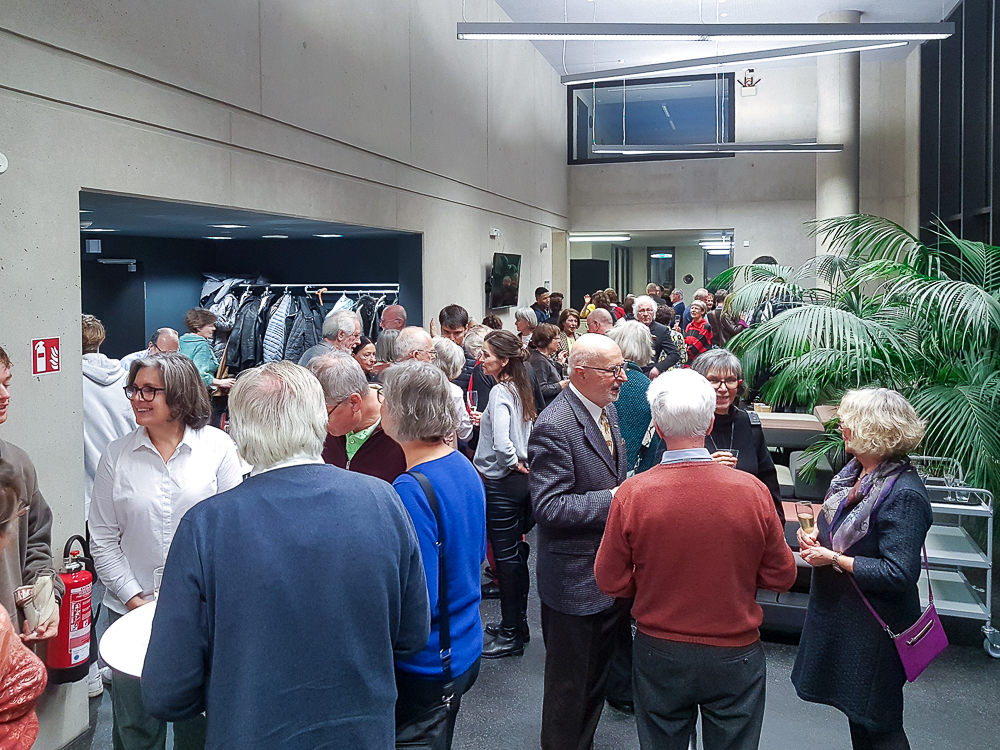 Im Anschluss an die Probe und das Gespräch im Studio gab es im Foyer des Balletthauses ausreichend Gelegenheit, auf das Neue Jahr anzustoßen und mit Hélène Blackburn und der ebenfalls anwesenden Komponistin der Musik, Ana Sokolović, sowie dem Lichtdesigner Emmanuel Landry zu diskutieren.