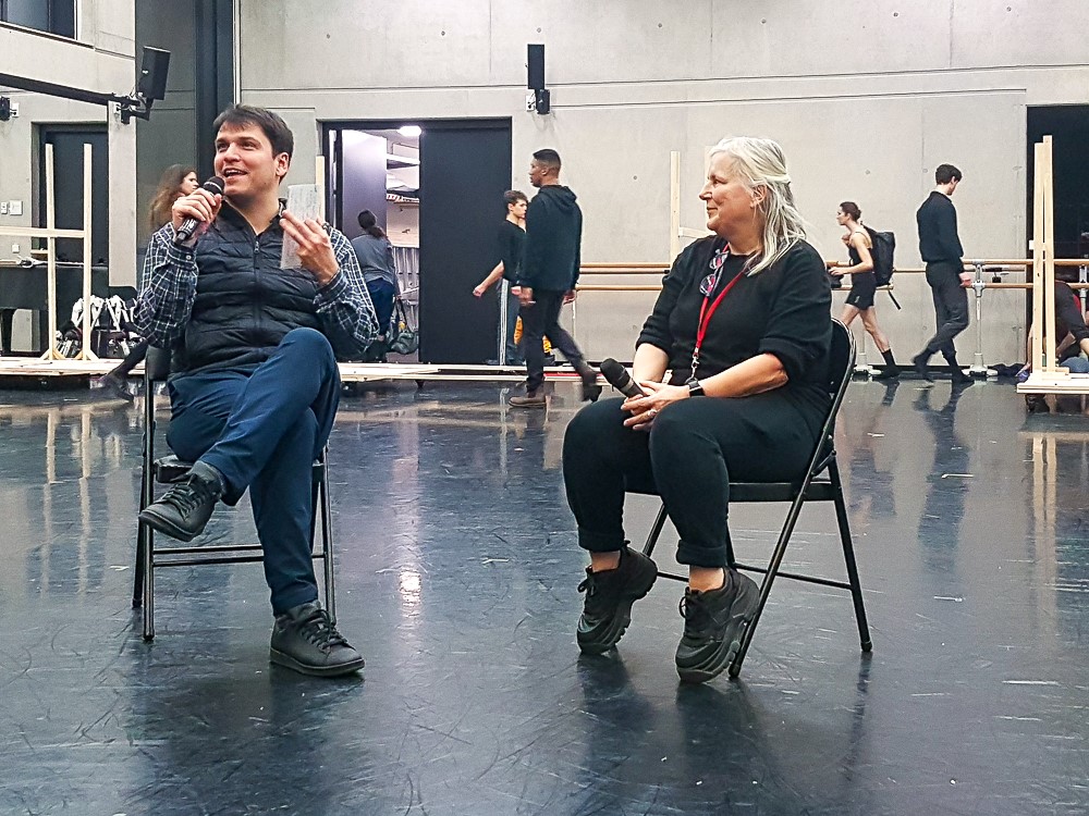 Im Anschluss an die tänzerische Probe bat Ballettdirektor Demis Volpi die Choreographin zu einem Gespräch über ihre Arbeit.