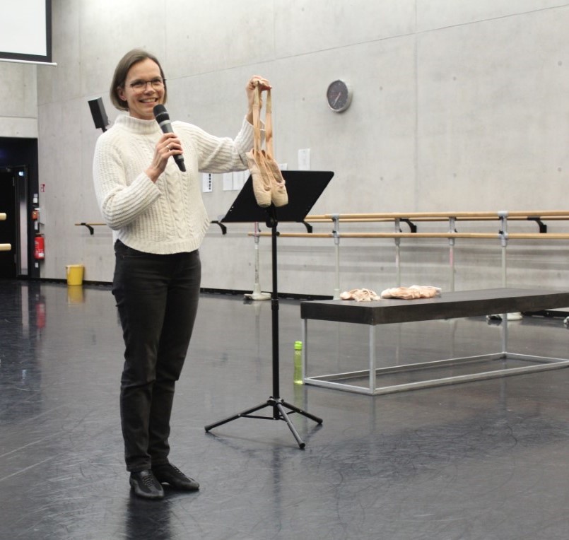 Eva, die selbst siebzehn Jahre als Ballerina getanzt hat, hält ein Paar Spitzenschuhe in die Höhe: „Eine Reliquie. Das sind meine letzten eigenen Schuhe, als ich aufgehört habe aktiv zu tanzen. Seit 20 Jahren hängen sie bei mir in der Wohnung. Ich kann mich nicht davon trennen.“