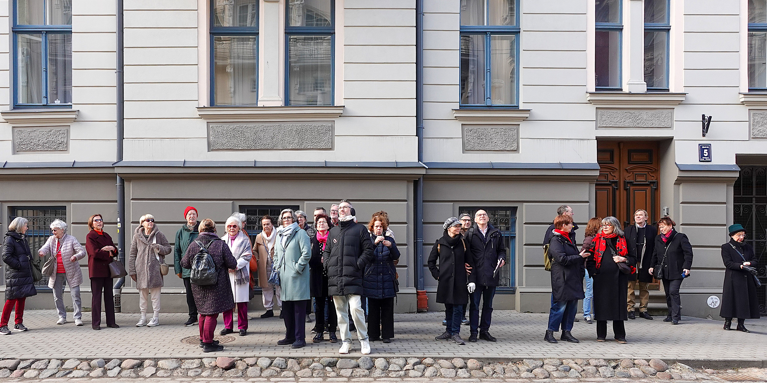 Riga ist mit rund 800 Gebäuden das Zentrum des Jugendstils und Weltkulturerbe. Mit dem Bus an der Duna entlang. Am gegenüberliegenden Ufer sieht man die extravagante Nationalbibliothek. Blick auf die Skyline von Riga und Gruppenfoto. Die Markthallen und das russische Viertel (nachts nicht zu empfehlen) huschen vorbei. Die Bebauung ändert sich, russische Zeit, Gründerzeit, Moderne, Jugendstil und Holzhäuser wechseln sich ab. So schlagen wir den Bogen zurück zum Hotel.