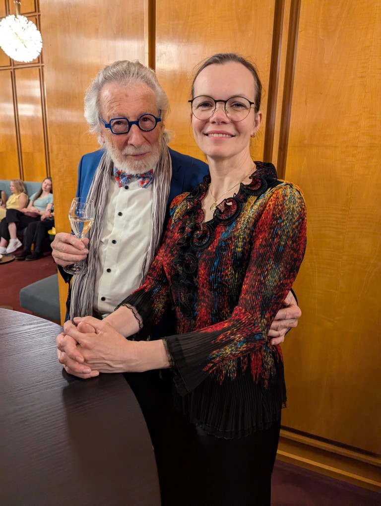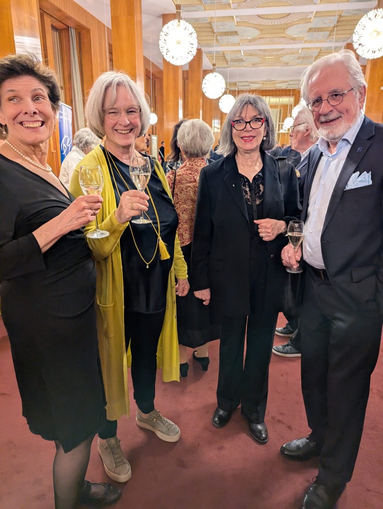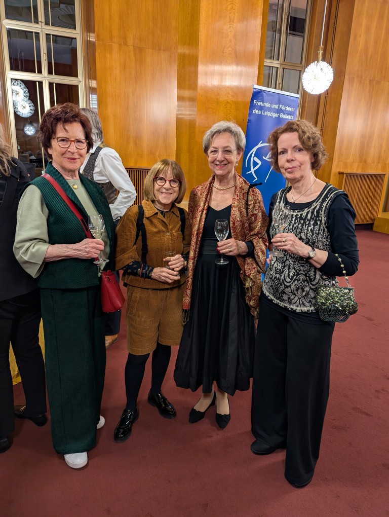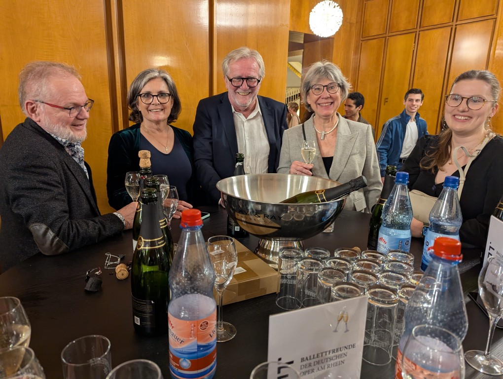 Etwas still, von der tänzerisch und musikalisch wunderbar erzählten Geschichte eingenommen, dürfen wir am Premierenempfang teilnehmen. Ein Glas Sekt bringt uns wieder auf den fröhlichen Teppich und regt an, die Gedanken und Bilder des Ballettabends auszutauschen. Und wieder eine Überraschung: wir sehen etliche ehemalige Mitglieder der Düsseldorfer Compagnie. Eleonor Freeman, Brice Asnar und Friedrich Pohl sind zur Premiere angereist und natürlich unsere Ballettmeisterin Mariana Dias-Chaix mit den beiden Söhnen.