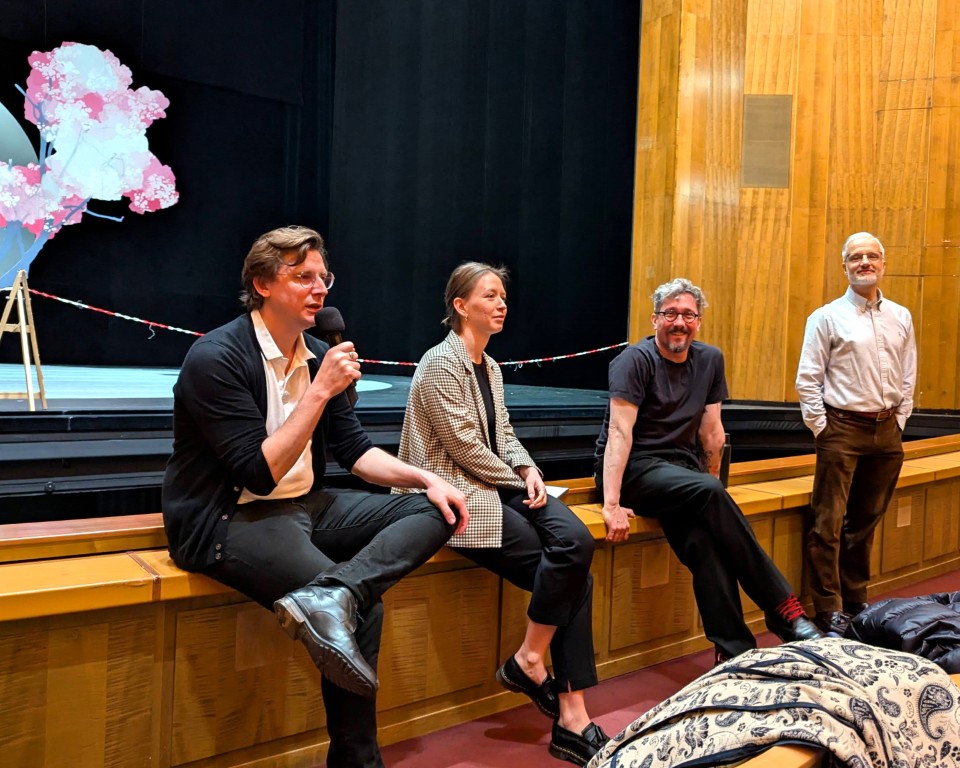 Ballettdirektor Rémy Fichet, Dramaturgin Anna Diepold, Choreograf Martin Chaix und Verwaltungsleiter Thomas Hörath führen uns ein in die traurige Geschichte der Mondprinzessin, einem alten japanischen Märchen.