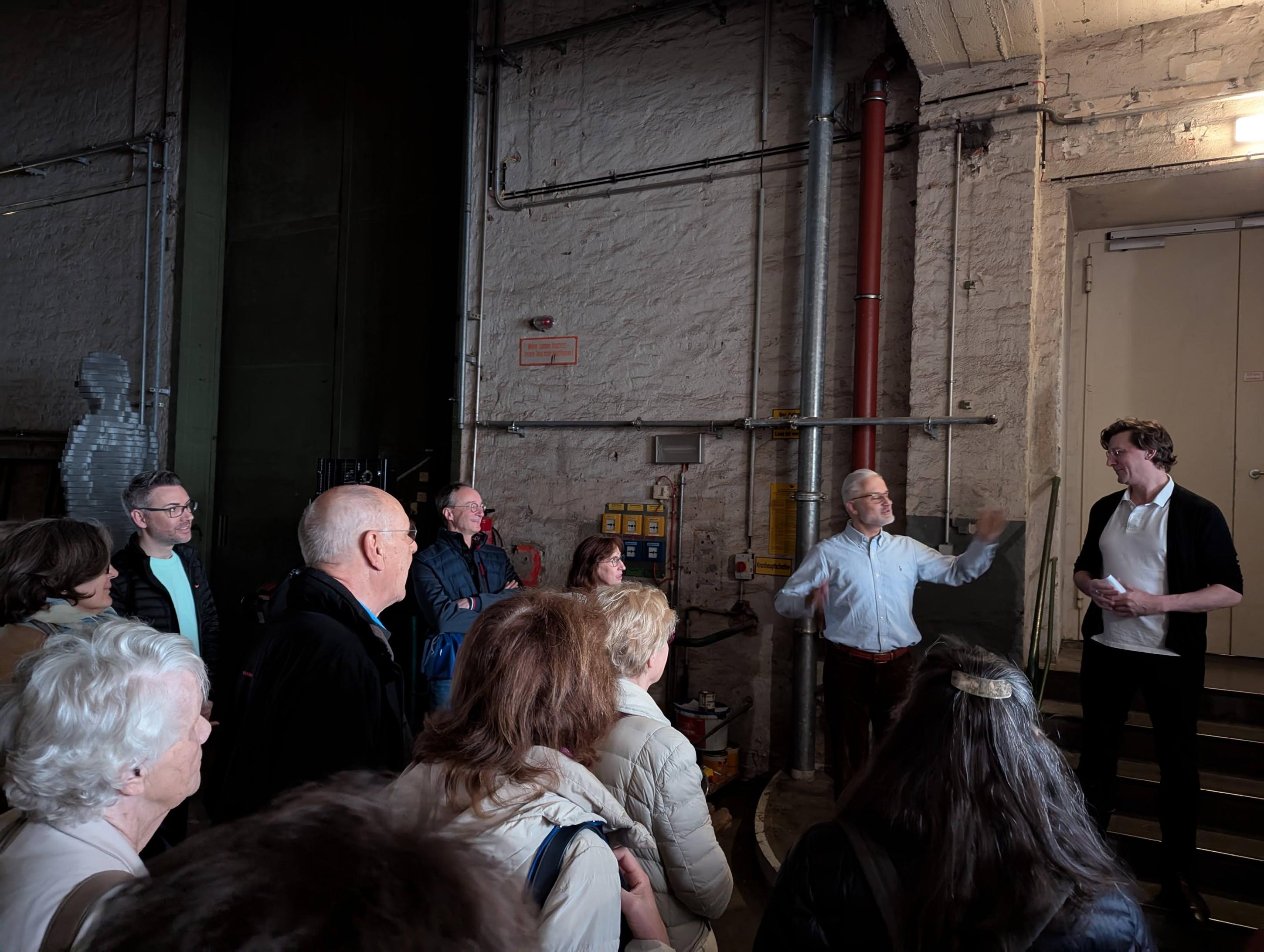 Besichtigung der großen Bühne mit Hinter- und Seitenbühnen (Vorsicht: überall liegen Kabel!)