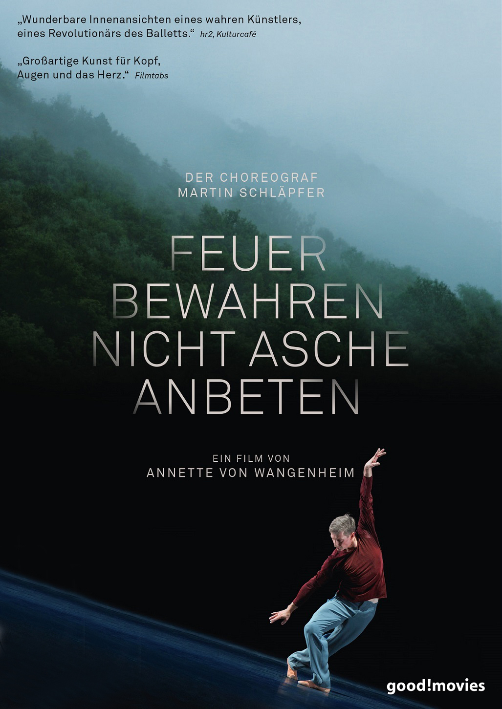 FEUER BEWAHREN – NICHT ASCHE ANBETEN folgt Martin Schläpfer bei seiner täglichen Arbeit und auf ganz privaten Wegen, bis zu seinem Sommerrefugium in der Schweiz. Zwei Uraufführungen bilden den tänzerischen Mittelpunkt des Films, von den ersten Kreationsproben bis zur fertigen Bühnenfassung: DEEP FIELD ist eine Auftragskomposition an Adriana Hölszky und opulenter Abendfüller, „Alltag“ eine Petitesse von keinem geringeren als dem Altmeister und Grandseigneur des modernen Balletts, Hans van Manen. Er schuf die „kleine Geschichte über einen Choreografen“ für Schläpfer höchstpersönlich, der die Hauptrolle in diesem intimen Portrait im Filmportrait selbst tanzt. Zum ersten Mal schaut ein Dokumentarfilm auch hinter die „persönlichen Kulissen“ dieses Ausnahmekünstlers, in seinen Kopf und sein Herz.