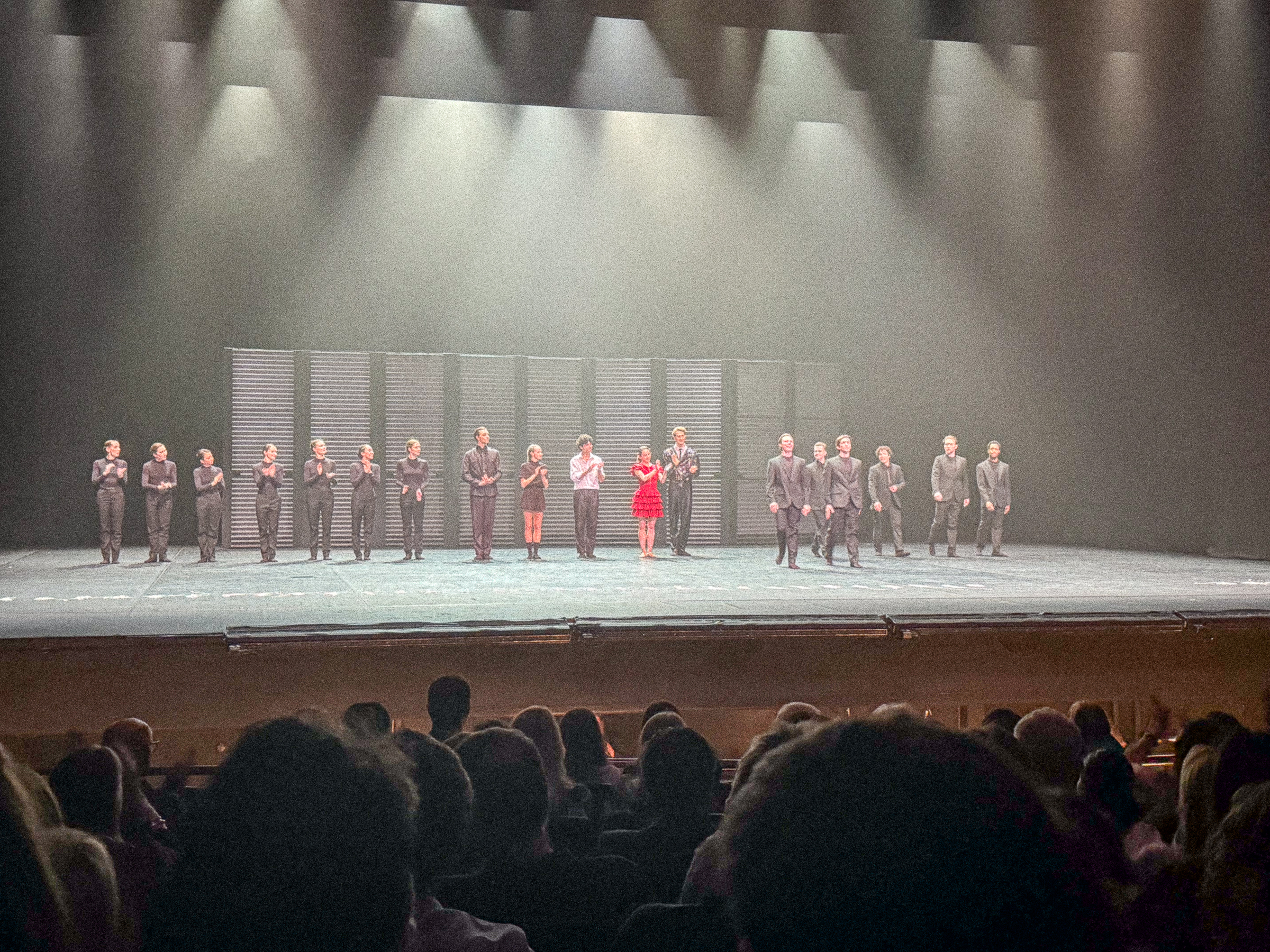 Das Orchester startete mit einem rasanten Klangfeuerwerk und die Bühne füllte sich mit entsprechendem Bewegungsfeuerwerk. Die Bühne puristisch schwarz mit beweglichen Wandelementen, die nach einem unergründlichen System auf der Bühne hin und her wanderten. Die Choreografie weniger klassisches Ballett, mehr Modern Dance. Anders, aber auch schön.