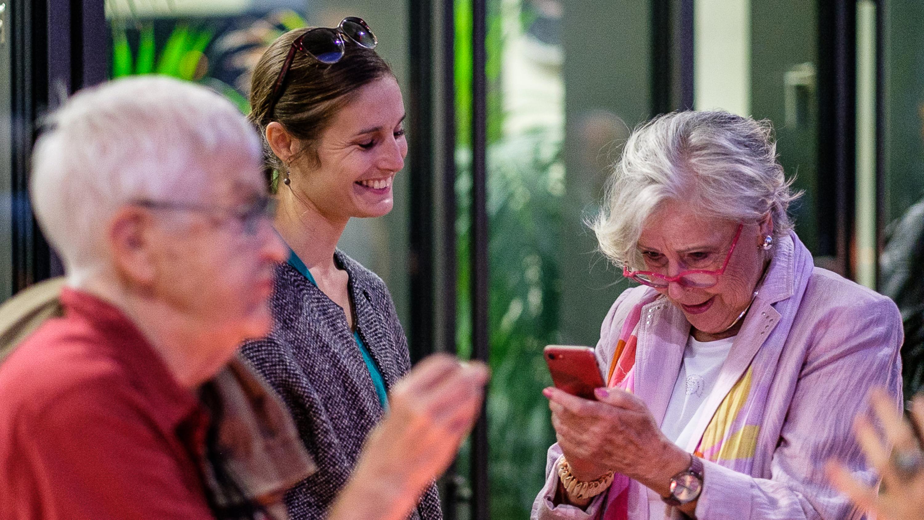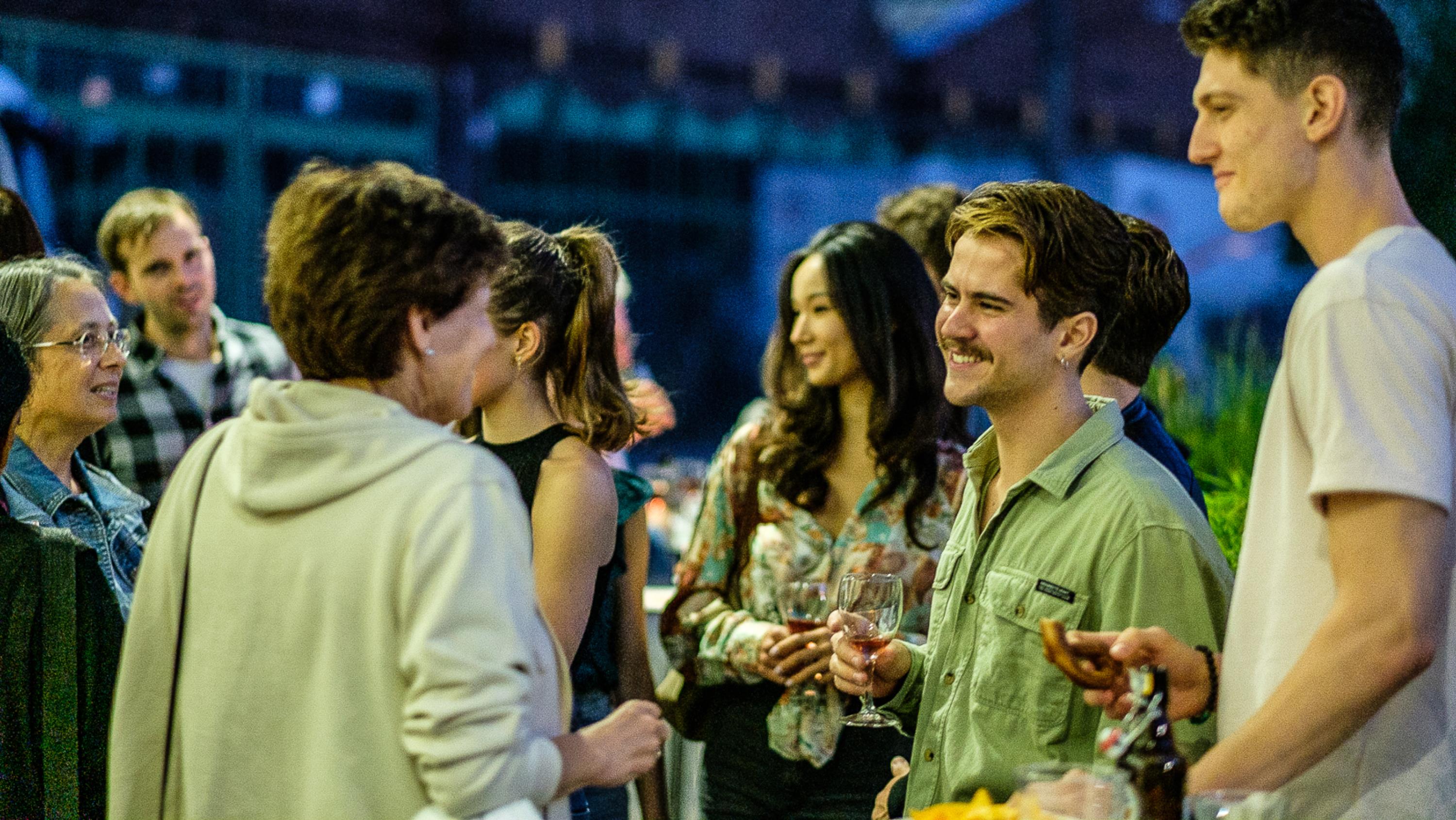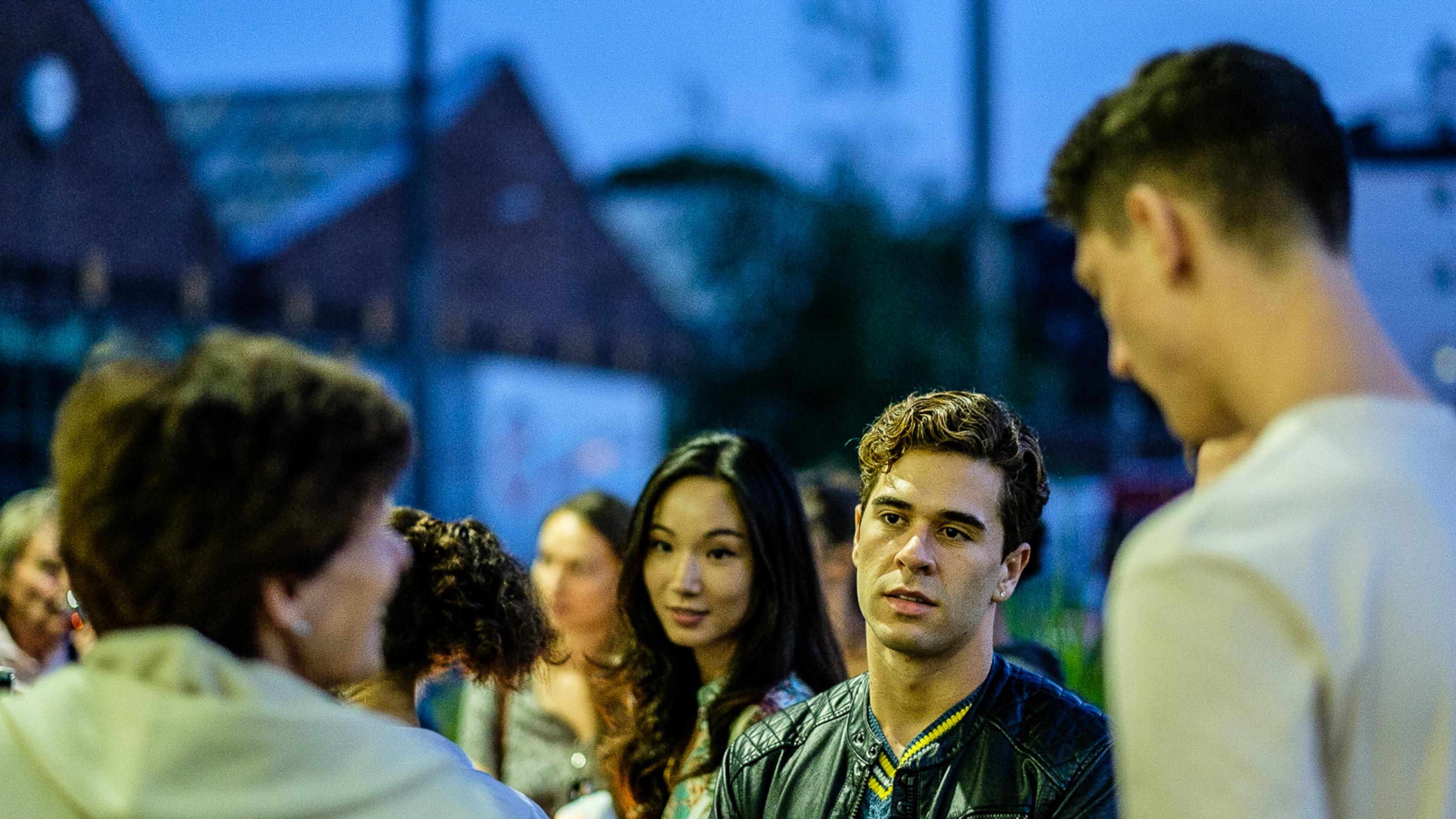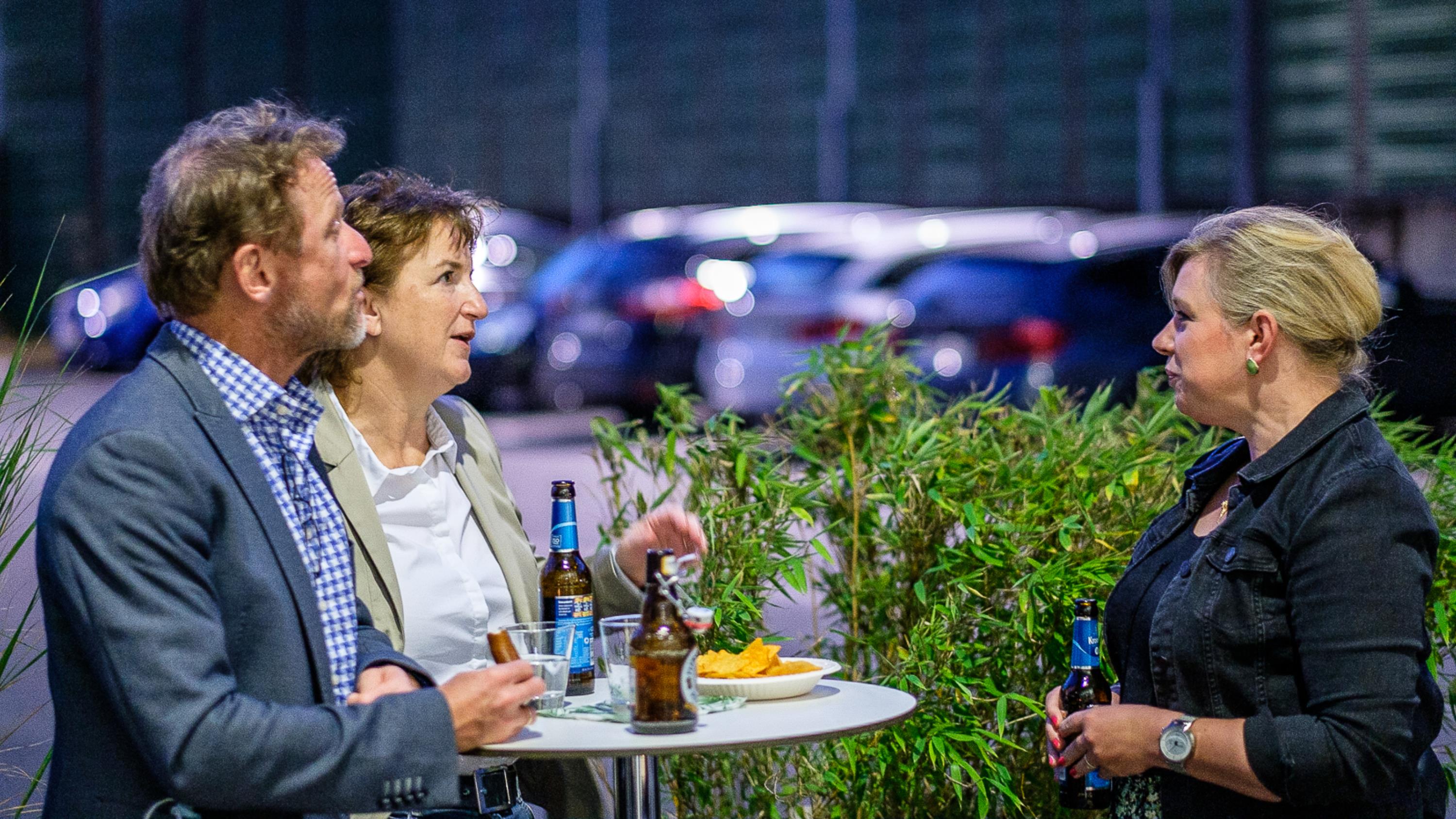 Am 25. August war es endlich wieder so weit. Mitglieder der Compagnie und des Balletthaus-Teams konnten sich mit den Ballettfreunden auf einen Umtrunk treffen. Vor dem Balletthaus waren Stehtische aufgestellt, Getränke und Snacks standen bereit. Die Masken durften fallen. Viele der neuen Compagniemitglieder waren erschienen und wurden – nach Ablegen erster gegenseitiger Befangenheiten – schnell in Gespräche mit den Ballettfreunden einbezogen.