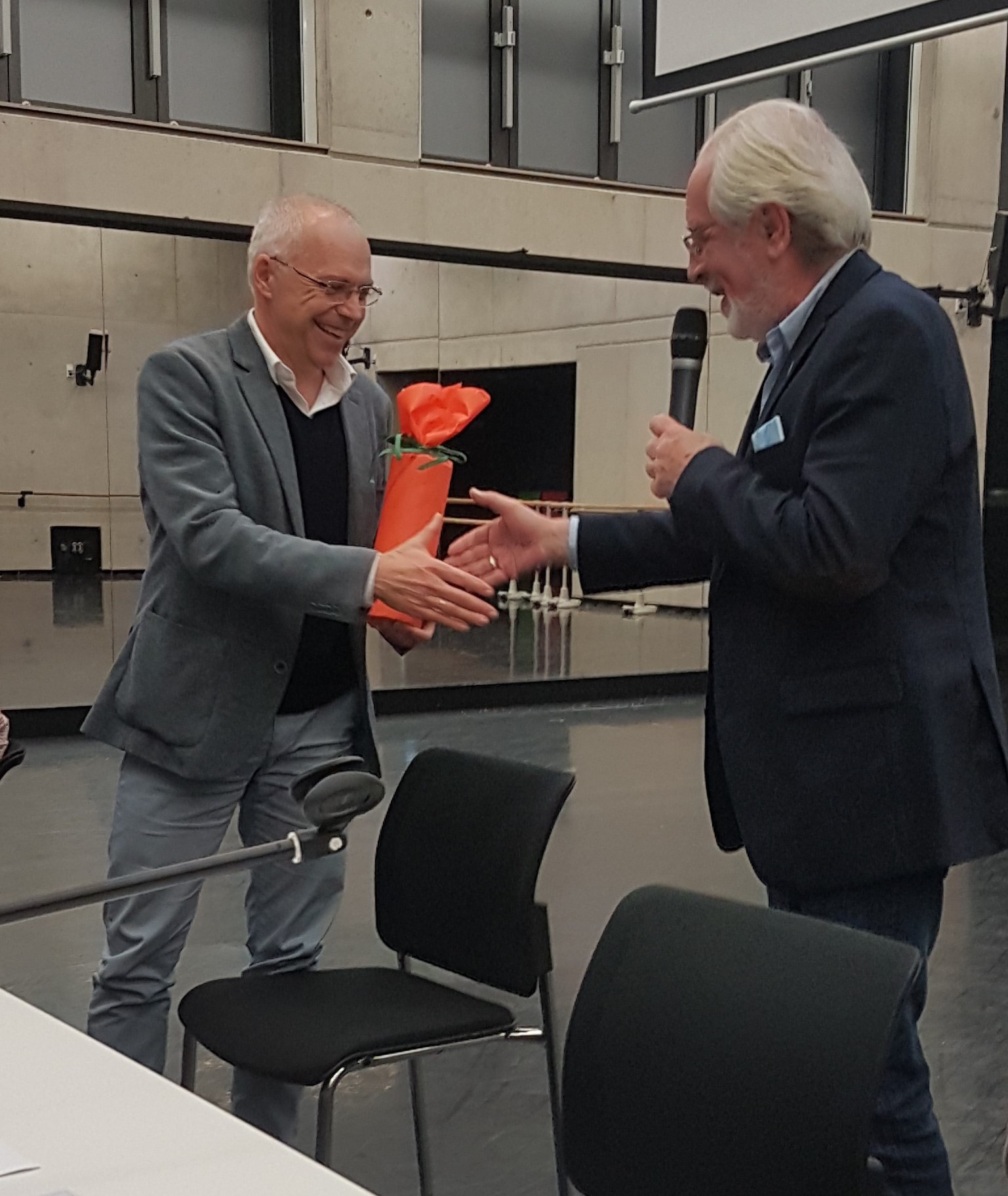 Zur angemessenen Würdigung des Jubilars überreichte Egon Schawe einen Blumenstrauß sowie ein Päckchen mit dem geheimnisvollen Hinweis, dass Oliver den Inhalt in kleinen Schlucken nach der Arbeit genießen möge. Der Inhalt beginne mit dem Buchstaben „W“.