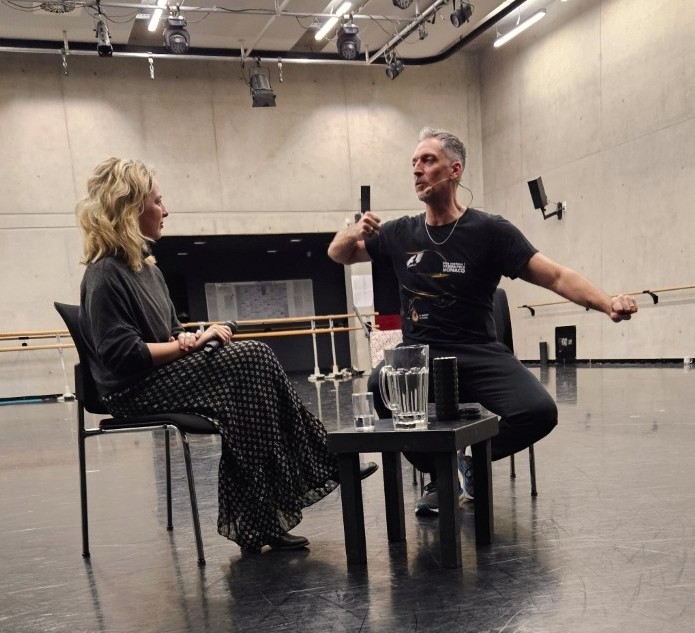 Im Gespräch mit der Dramaturgin Julia Schinke schilderte Raphaël, wie David Dawson, er und die anderen Tänzerinnen und Tänzer das Werk in zwei Wochen harter Arbeit entwickelt haben.