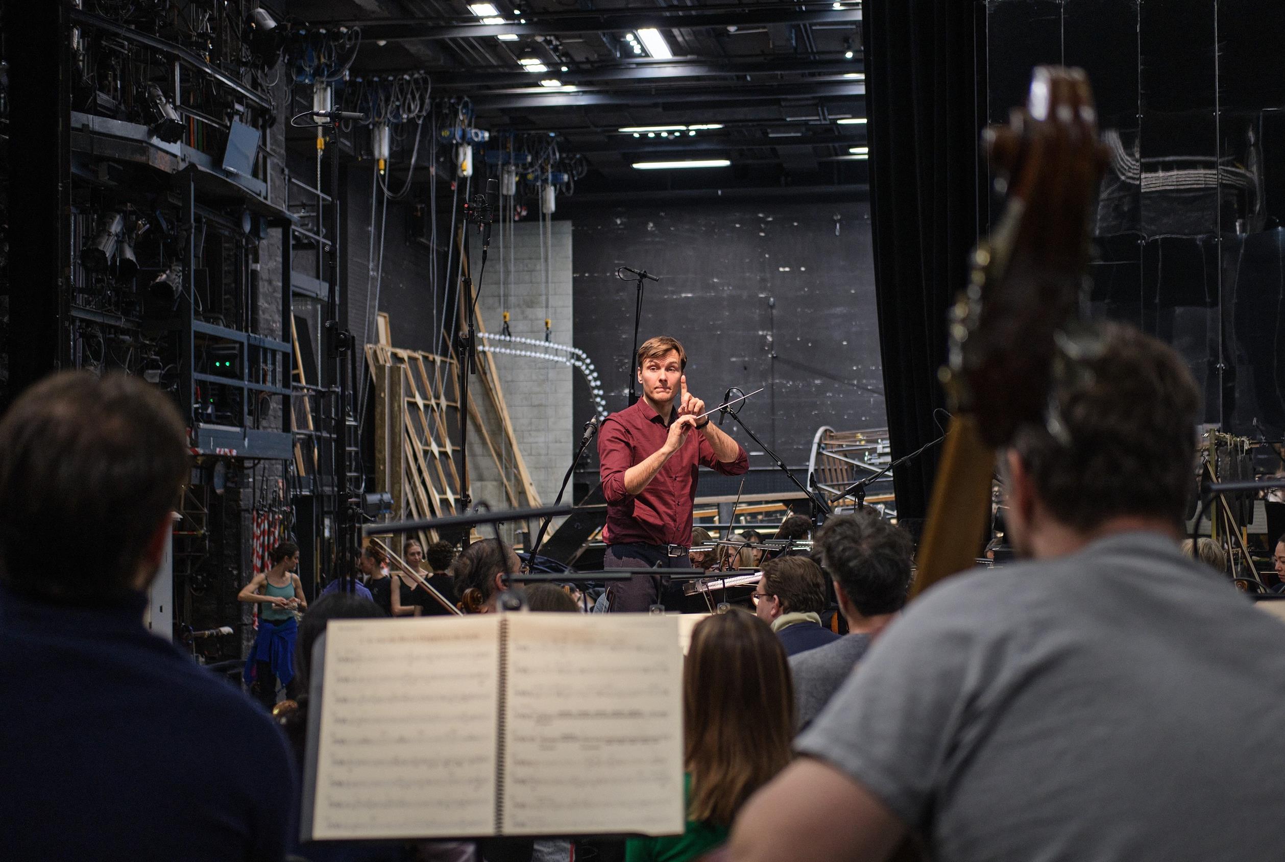 Bei Demis Volpis letzter Uraufführung in Düsseldorf wird es voll auf der Bühne des Opernhauses: Die gesamte 45-köpfige Compagnie teilt sich in verschiedenen Episoden den bis zur Hinterbühne reichenden Raum mit den groß besetzten Düsseldorfer Symphonikern unter der Leitung des designierten Chefdirigenten Vitali Alekseenok.