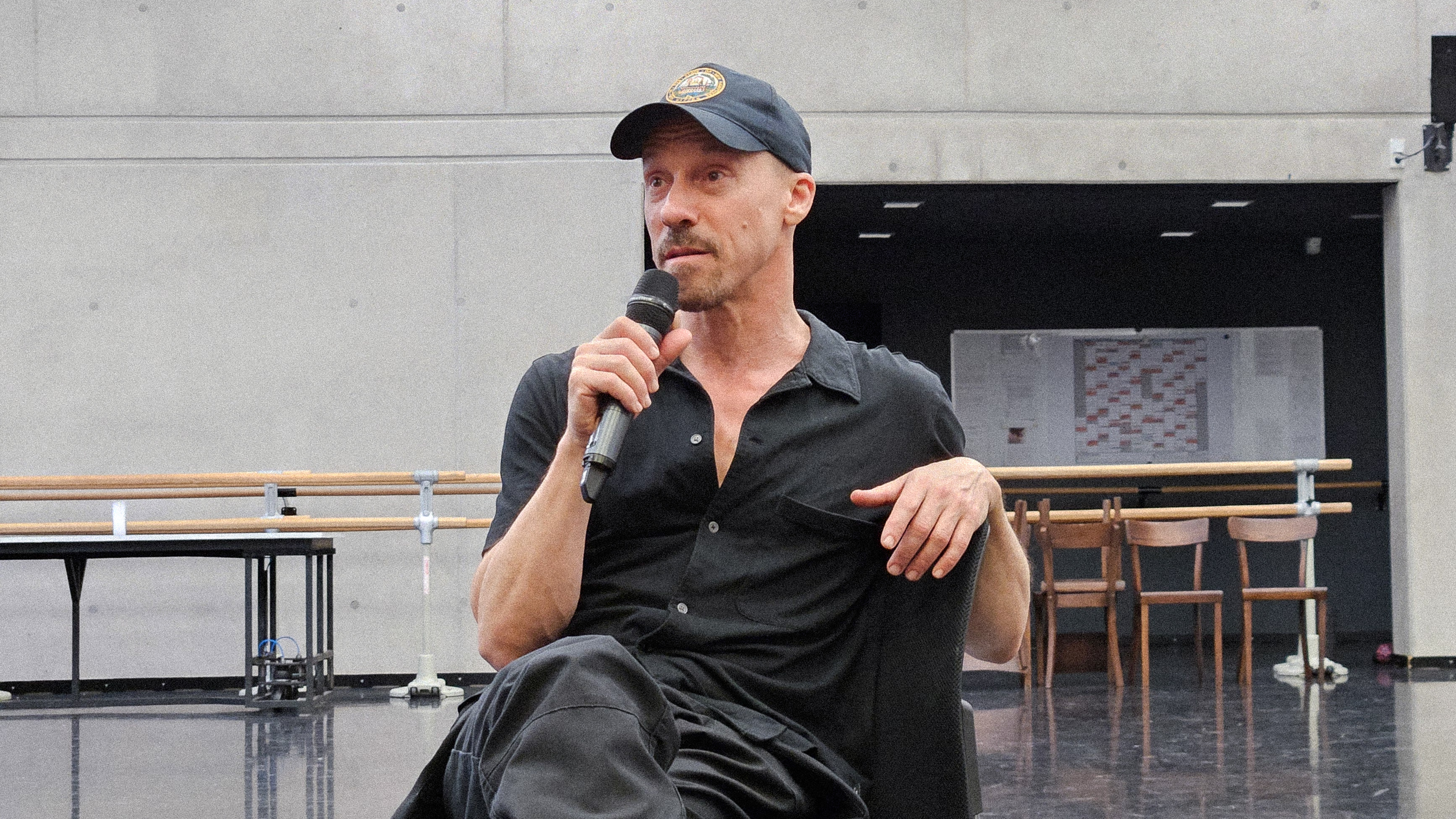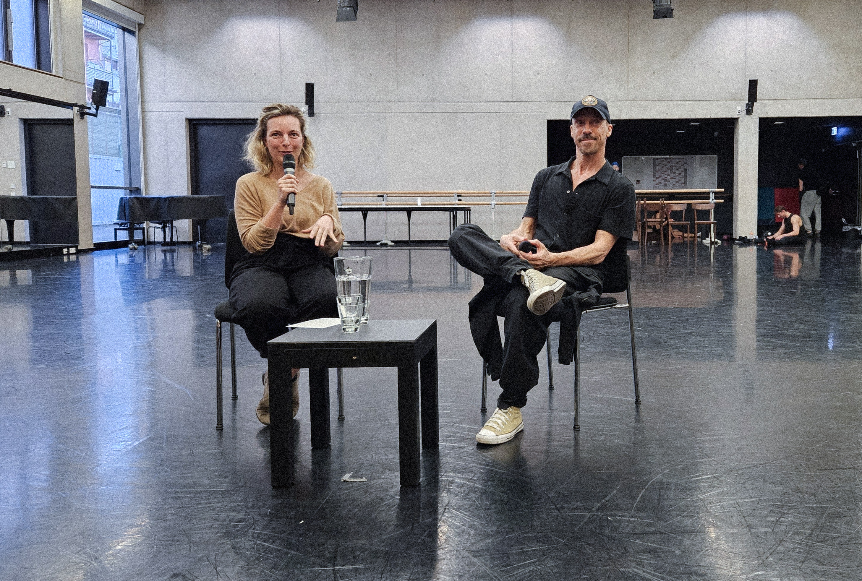 Im nachfolgenden Gespräch wendet sich Richard Siegal zunächst direkt an das Publikum, bedankt sich für das Interesse an seiner Arbeit in fließendem, fast akzentfreiem Deutsch, nur um darauf hinzuweisen, dass das schon das Ende seiner Deutschkünste sei. Er bittet um Verständnis, das Gespräch weiter auf Englisch zu führen.