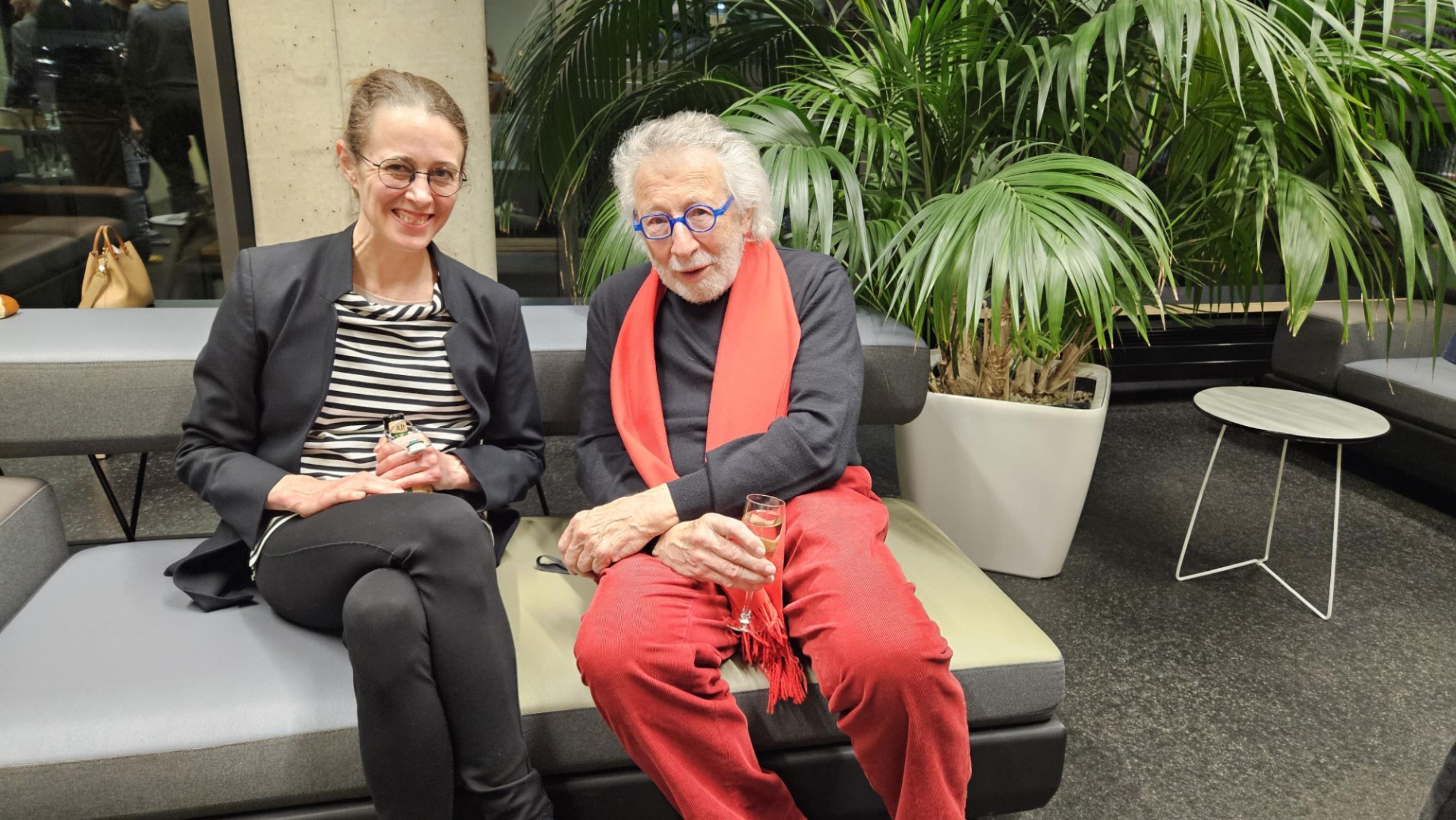 Beim anschließenden Treffen mit Getränken und Fingerfood im Foyer des Balletthauses hatten die Ballettfreunde Gelegenheit, sich mit Bridget und Raphaël auszutauschen, die tapfer bis zum Ende des für sie langen und anstrengenden Tages durchhielten.