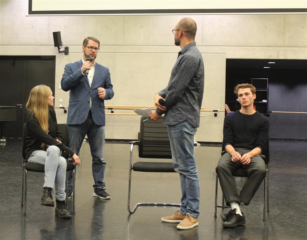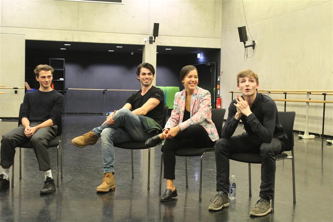 Sieben neue Tänzerinnen und Tänzer und einen neuen Ballettrepetitor stellte Alban Pinet am 4. Oktober den Ballettfreunden vor. Die neuen Mitglieder der Compagnie zeigten Videoausschnitte von Aufführungen, in denen sie tanzten. Sie mussten Kinderfotos von sich offenbaren und die Fragen von Alban und sein gewohntes Speed-Dating überstehen. Das gelang bestens und auch sehr kurzweilig. Anschließend standen „die Neuen“ den Ballettfreunden beim Umtrunk noch für erste „Kontaktaufnahmen“ geduldig zur Verfügung.