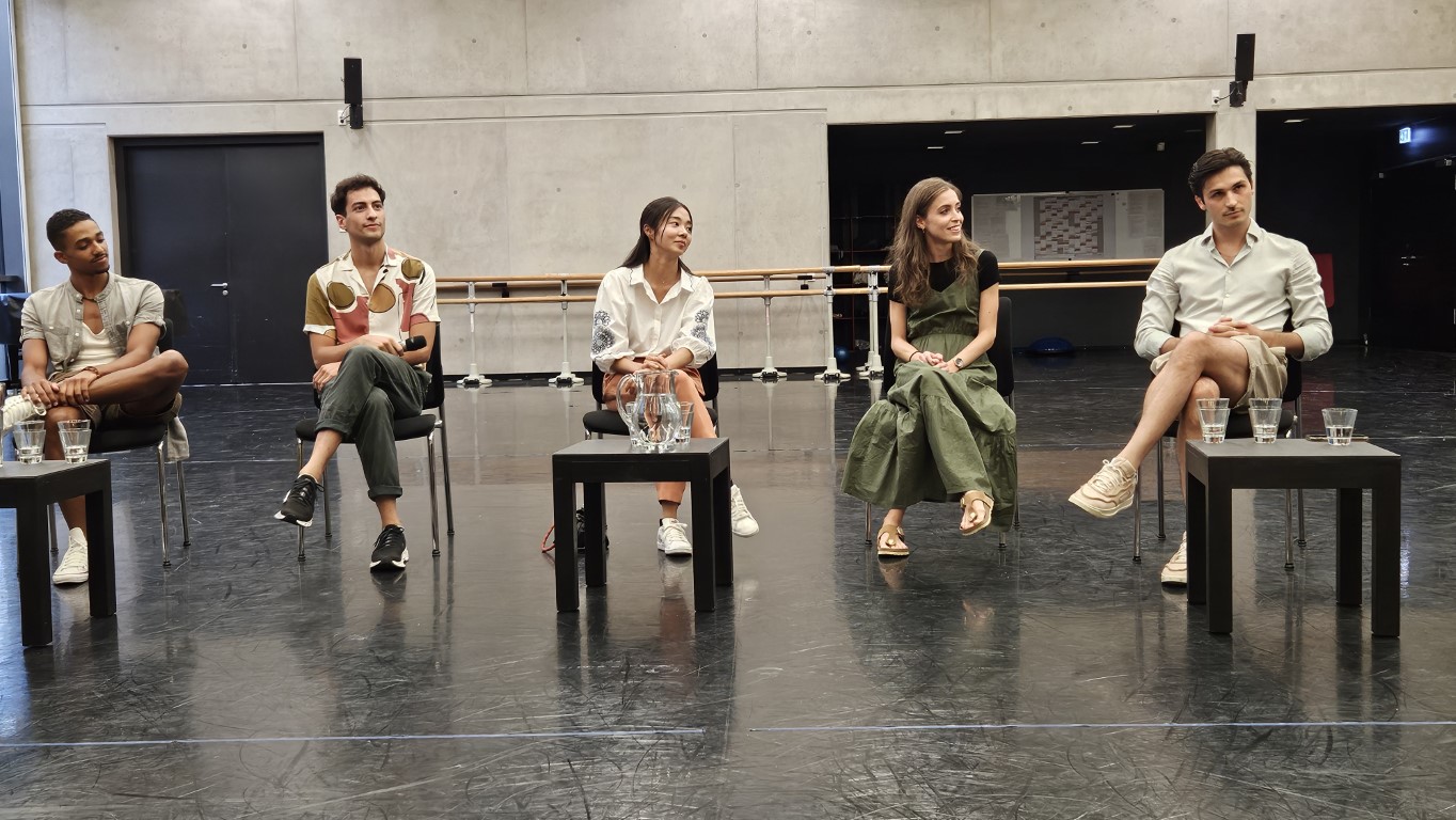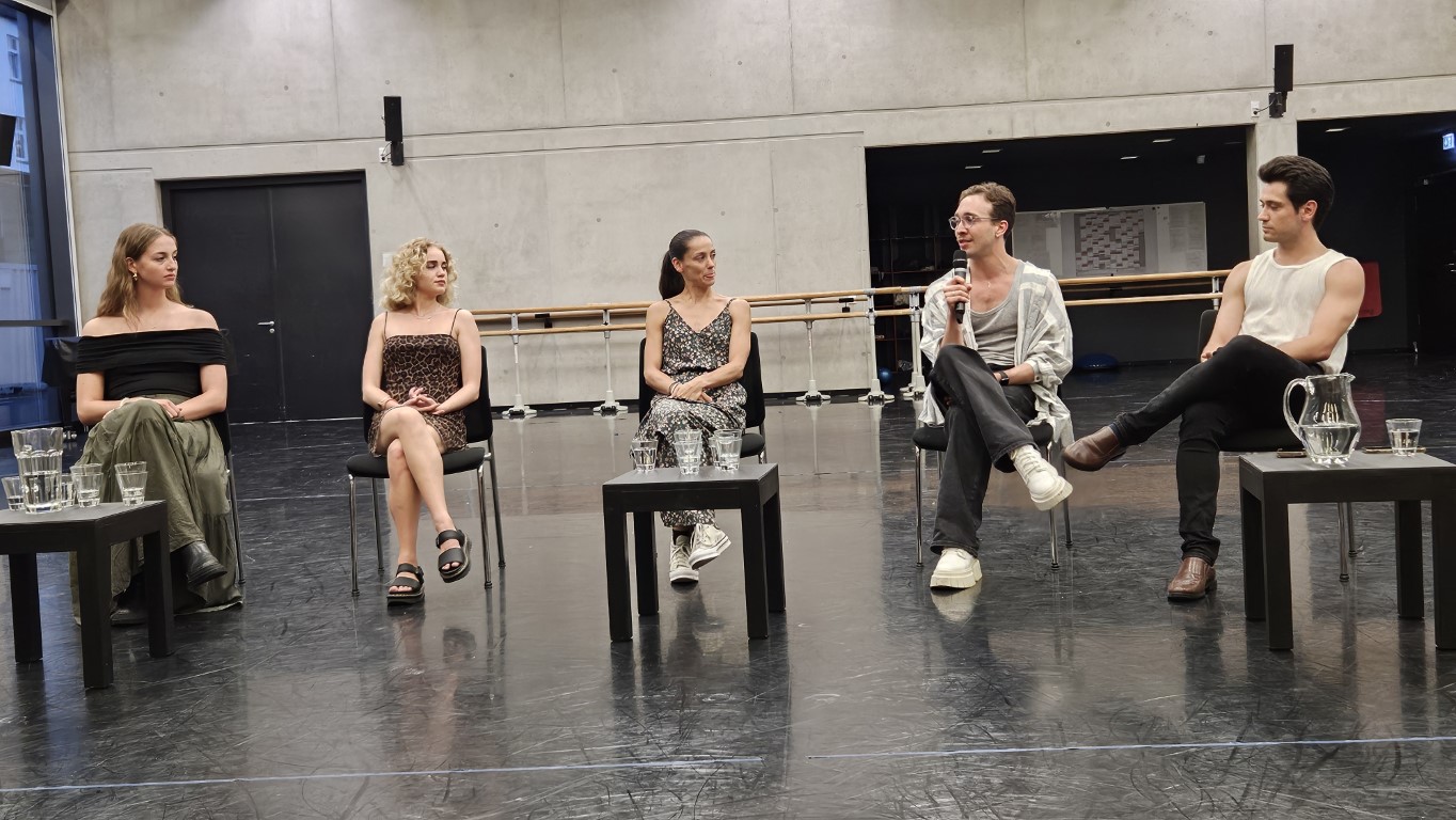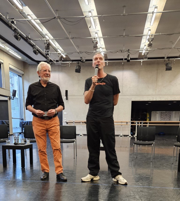 Nach der Präsentation konnten sich die Ballettfreunde im Foyer bei diversen Kaltgetränken mit den neuen Compagniemitgliedern unterhalten. Es kamen – da zwischenzeitlich das Training in einem anderen Studio geendet hatte – auch Chefchoreographin Bridget Breiner und viele „alte“ Tänzerinnen und Tänzer hinzu. Ein echtes Wiedersehen also und große Freude darüber, dass die neue Spielzeit unter neuer Leitung mit spannenden Stücken nun begonnen hat. Gespannt sind wir besonders auf die ersten Bühnenauftritte der Neulinge.